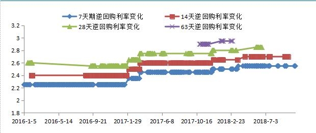 从图2可以看出,近三年各期限逆回购的利率均不断抬升。一方面是对美联储加息的应对;另一方面也释放偏紧的政策信号。
